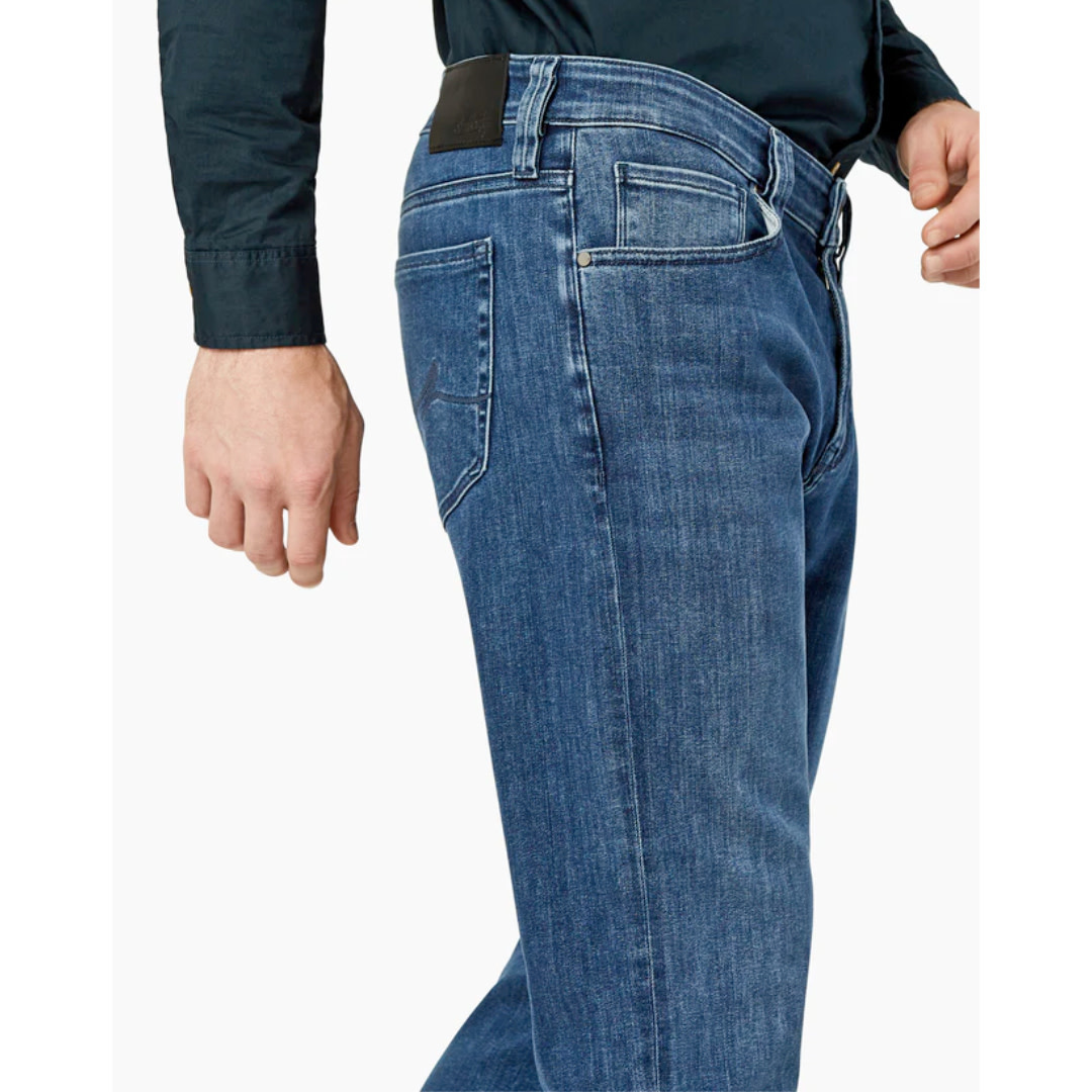 • A contemporary fabrication complements the classic styling of this higher-rise, straight leg jean. They are cut from premium stretch denim that has a distinguished, modern appearance in a versatile wash to easily transition from casual to semiformal. Designed with comfort and effortless wear in mind, these have a relaxed fit through the leg that’s tailored to eliminate excess fabric at the hip and thigh.